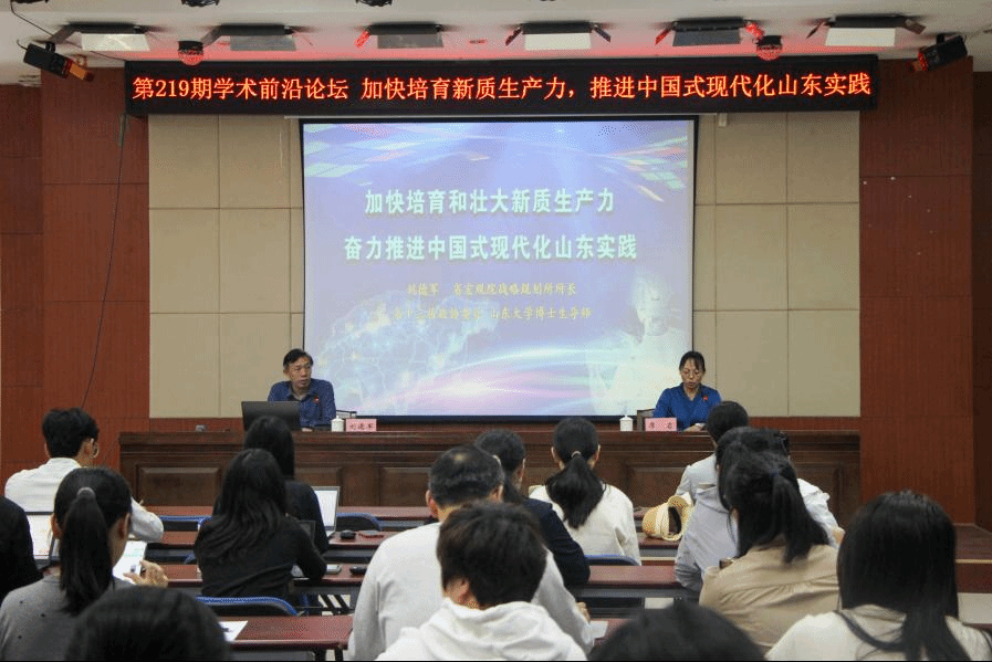 4月18日,由科研处主办、yl6809永利检测中心承办的第219期学术前沿论坛顺利举办。山东省宏观经济研究院刘德军教授应邀作了题为《加快培育新质生产力,推进中国式现代化山东实践》的报告。