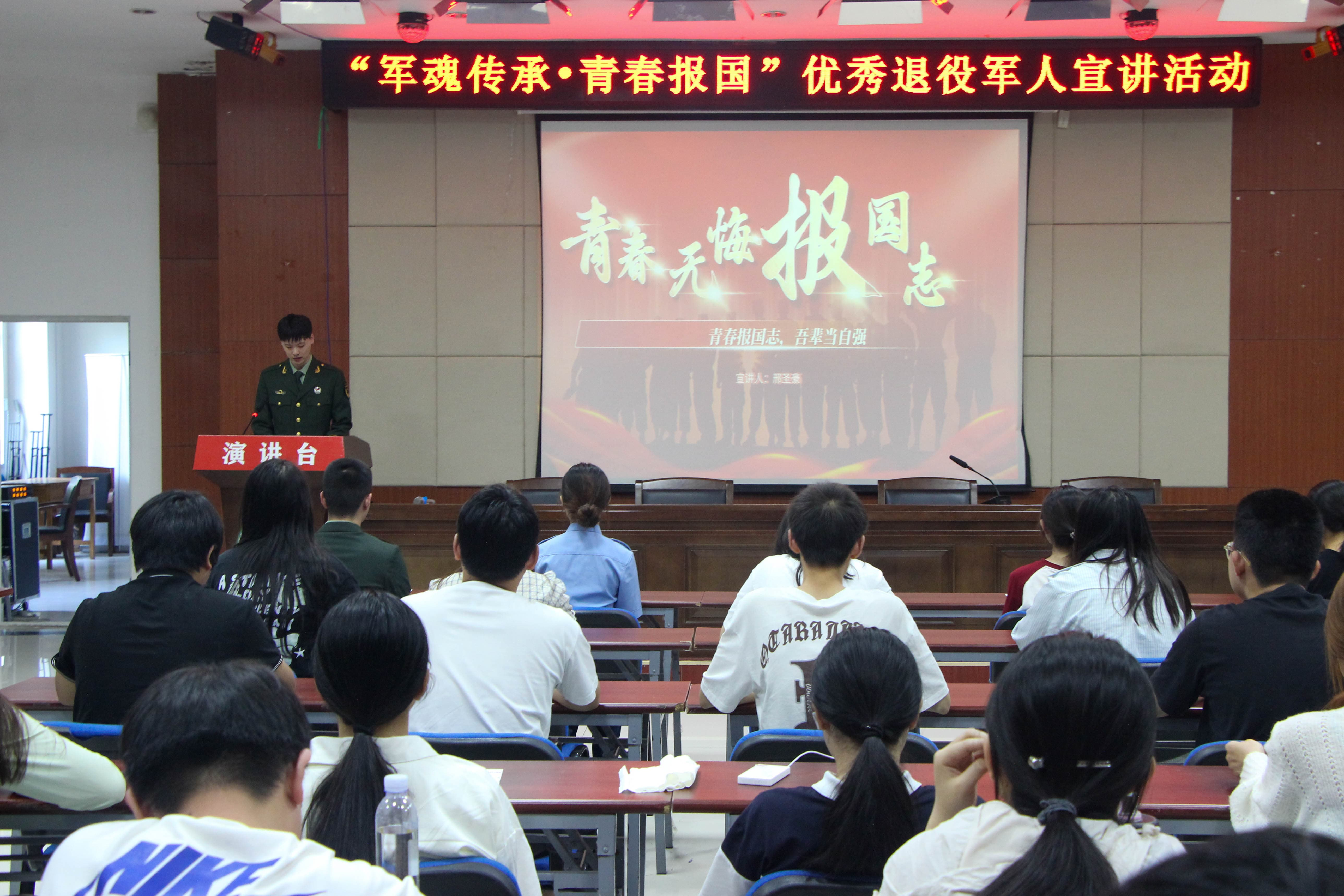 为进一步增强青年学子国防意识,激发参军报国热情,2025年5月至6月,学校组织开展“军魂传承·青春报国”优秀退役军人校园巡回宣讲活动。此次活动由学生工作处(武装部)主办、yl6809永利检测中心承办。