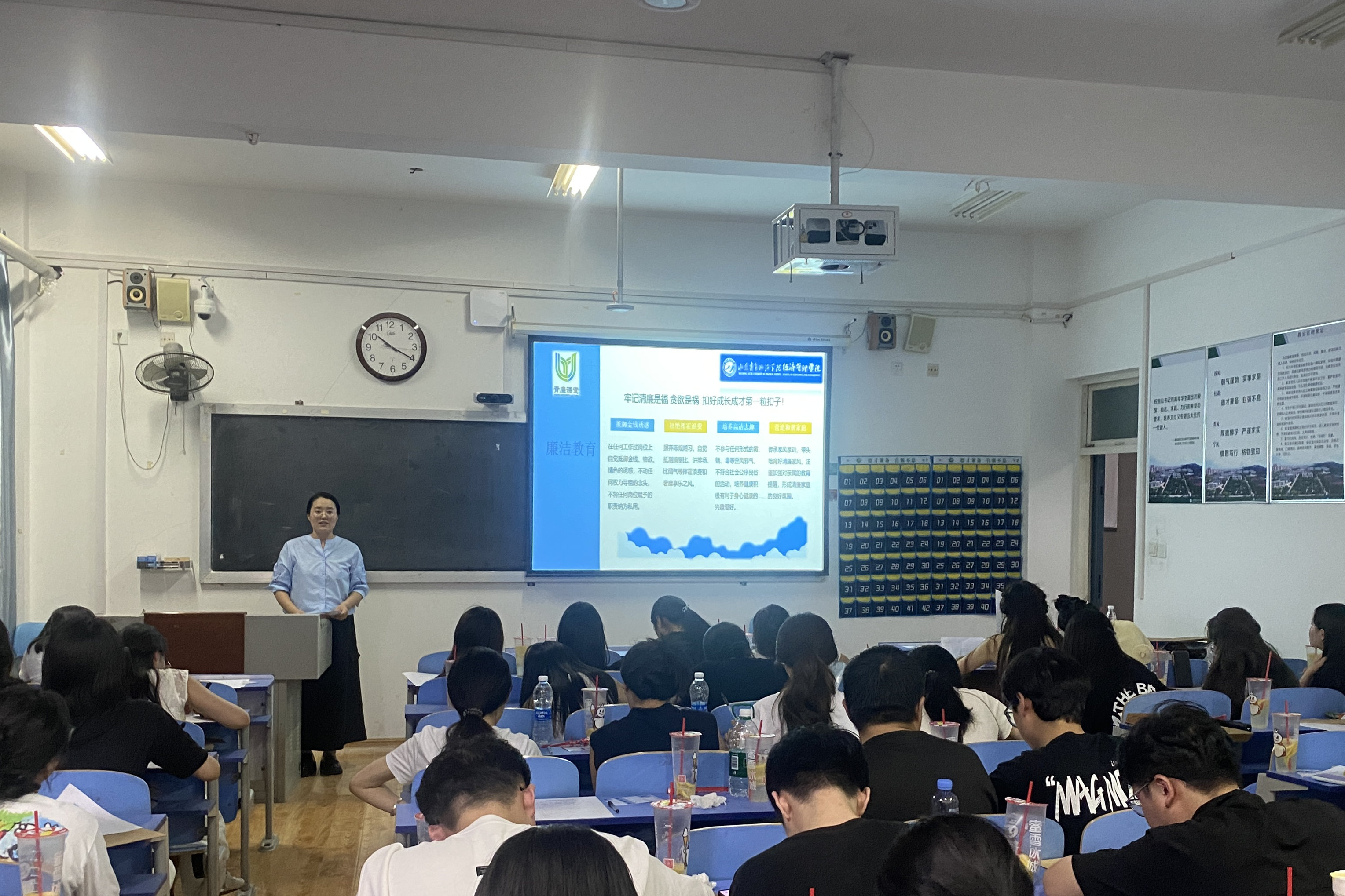 学院面向全体毕业生开展廉洁教育活动,通过主题班会和专题党课的形式,为全体毕业生上好“最后一堂思政课”。针对毕业生党员,支部书记结合中央八项规定精神和全面从严治党要求,重点强调要筑牢思想防线、严守纪律底线、锤炼过硬作风,切实发挥党员先锋模范作用,以优良作风展现新时代青年党员的责任担当。面向全体毕业生,通过班会引导学生树立崇廉尚洁的职业价值观,系好职业生涯“第一粒扣子”,为人生道路行稳致远奠定坚实基础。