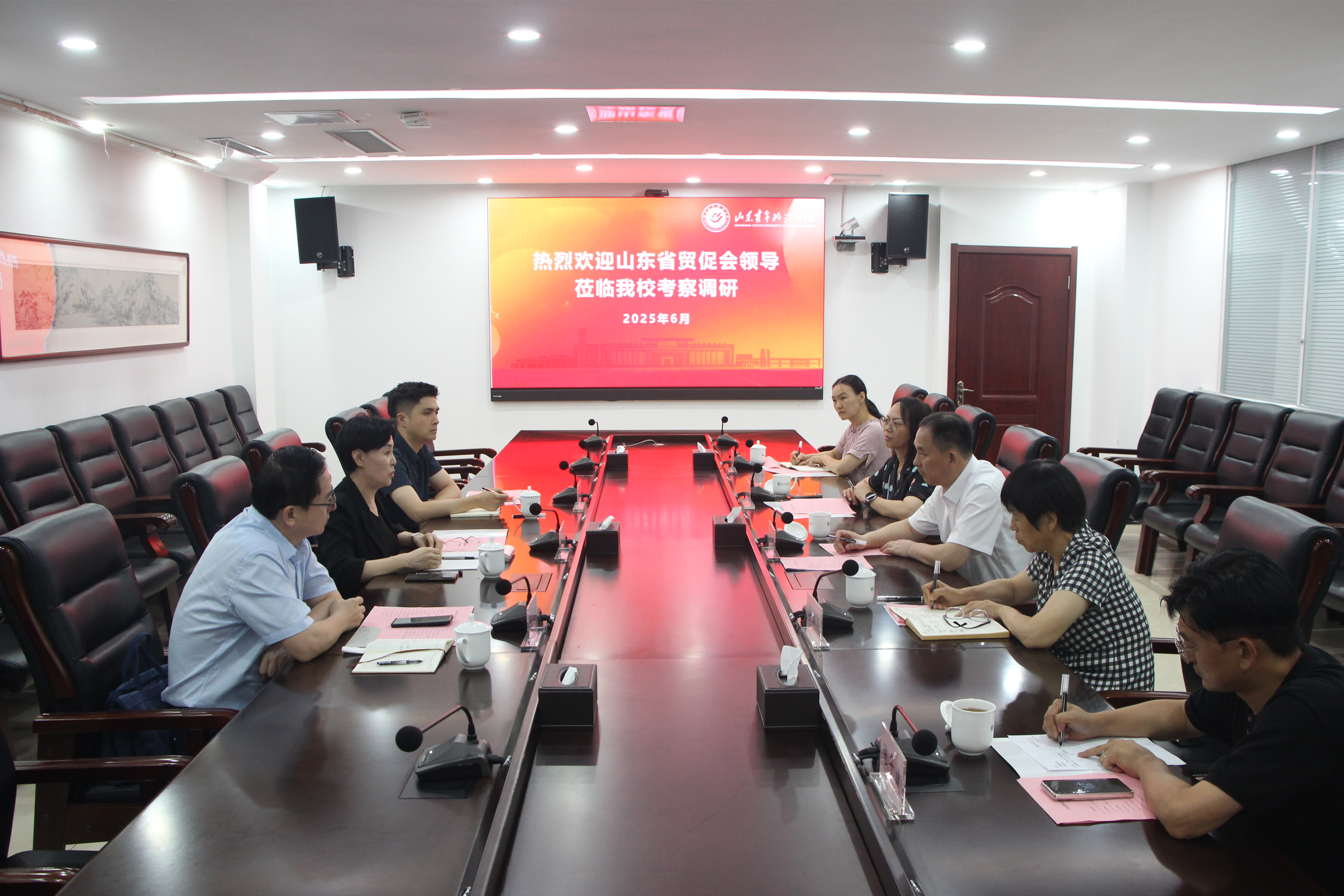为深化产教融合、创新人才培养机制,6月26日下午,山东省贸促会党组成员、副会长陈彤一行莅临我校,围绕深化战略合作、共育经贸人才等方面开展专题研讨。学校党委副书记、院长辛杰,党委委员、副院长李玉英出席活动,yl6809永利检测中心院长席岩及相关专业教师参与交流。
