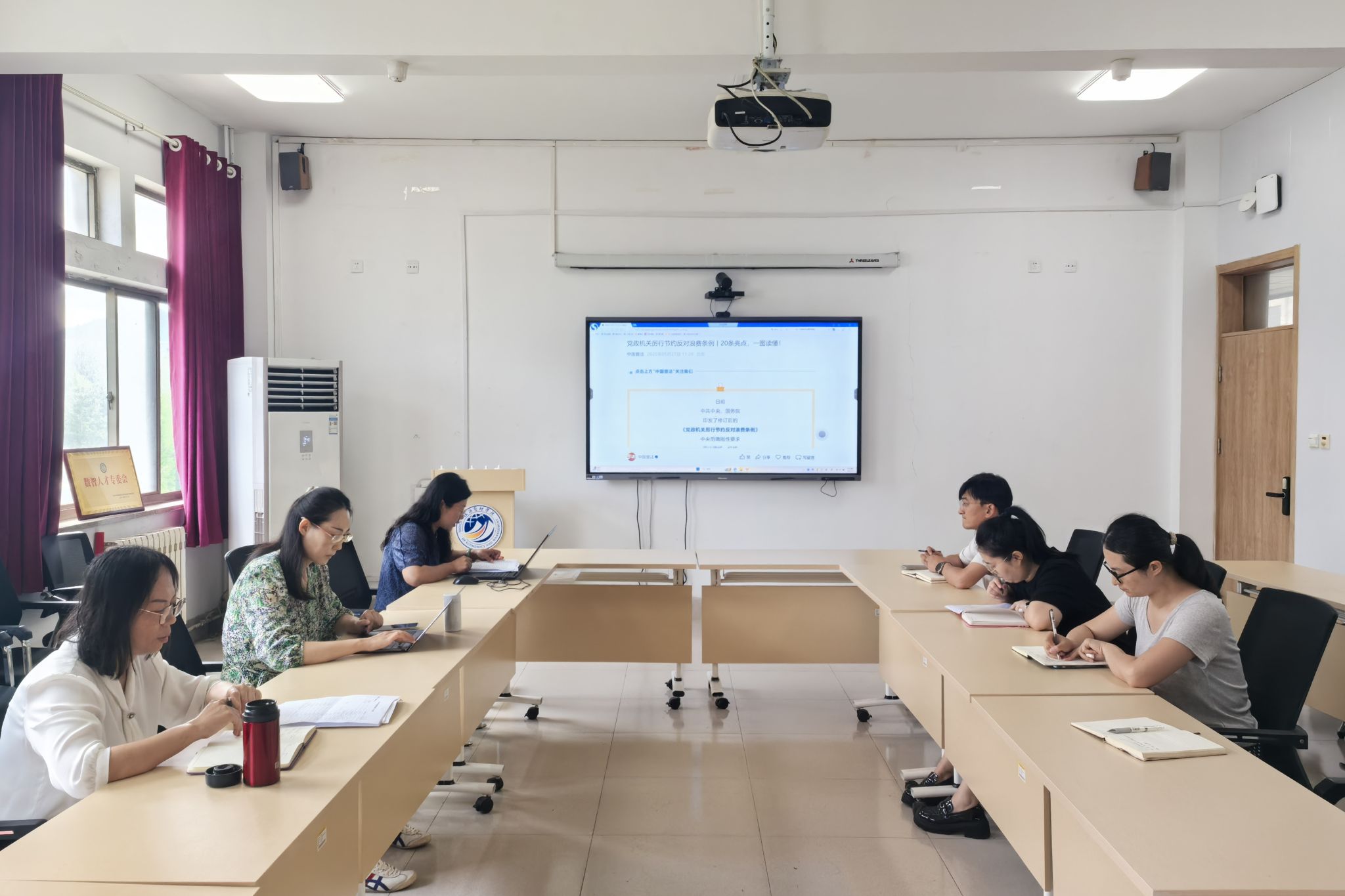 7月2日,yl6809永利检测中心党委理论学习中心组(扩大)开展集体学习,深入学习新修订的《党政机关厉行节约反对浪费条例》(以下简称《条例》),并结合违反中央八项规定及其实施细则精神典型案例开展警示教育。学院党委书记张婷婷主持会议并领学,党委理论学习中心组成员参加,各科室负责人列席参会。