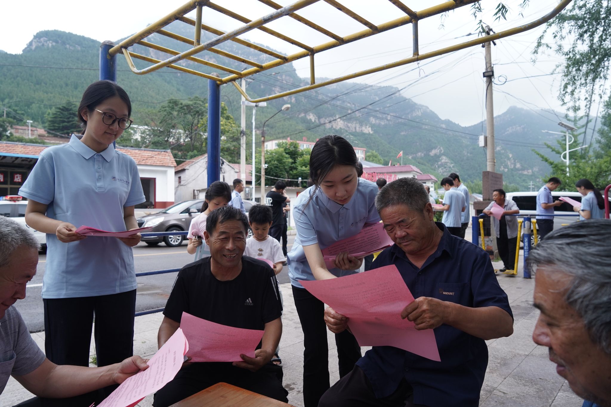 专业赋能,经济学智慧守护乡村“钱袋子”。实践第二站,团队联合当地派出所,深入沂蒙山区乡镇村居,开展“防非宣传乡村行”活动。经济学专业的队员们充分发挥学科优势,通过悬挂横幅、发放传单、案例讲解等形式,用通俗语言向村民揭露非法集资、传销等骗局的本质。队员们结合“供需原理”“信息不对称”等专业知识,分析非法金融活动的运作逻辑,生动拆解“养老理财”“高息返利”等骗局套路。指导教师赵飞针对留守老人等重点群体如何开展反诈宣传提供专业指导,切实筑牢乡村金融安全防线。这种“专业理论+现实案例”的宣传方式,有效提升了村民的防范意识,活动中共发放宣传材料800余份,覆盖群众1000余人次,警民协同的创新模式,让防非知识真正“飞入寻常百姓家”。
