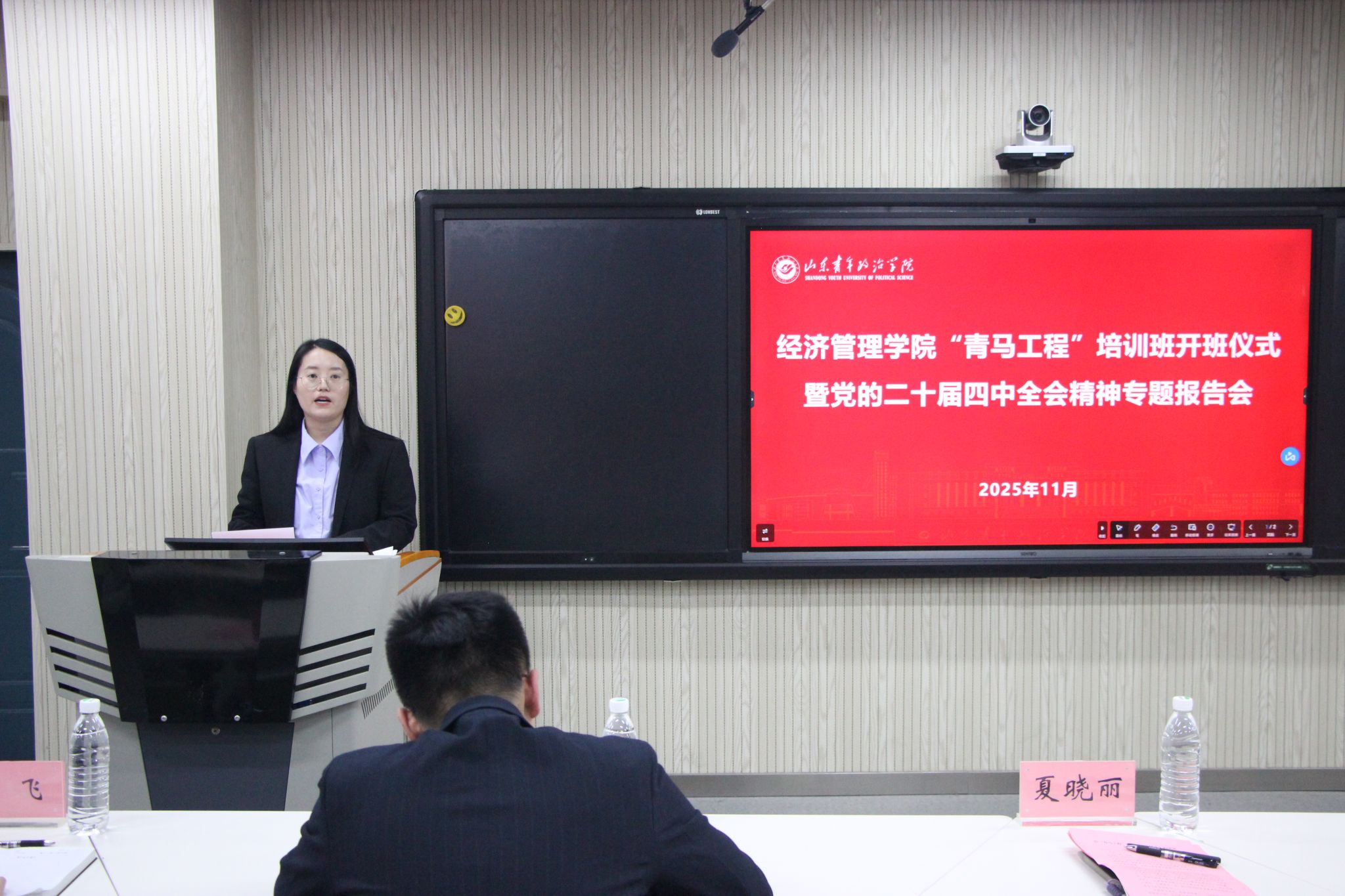为深入学习贯彻党的二十届四中全会精神和习近平总书记关于青年工作的重要思想,扎实推进青年马克思主义者培养工程,强化对学生骨干的政治引领与能力赋能,11月27日,yl6809永利检测中心在知行楼509教室举办2025年“青马工程”培训班开班仪式暨党的二十届四中全会精神专题报告会。学院党委书记张婷婷、团总支书记夏晓丽、辅导员代表以及本期“青马工程”培训班全体学员参加。