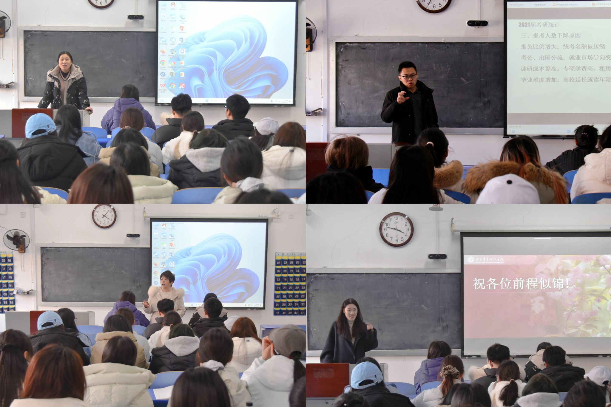 同日,人力资源管理专业与经济学专业分别开展考研专题辅导,精准对接大一学生考研规划需求。人力资源管理专业教研室主任王菁、教师陈园园聚焦考研备考初期核心困惑,结合大一学生学业基础特点开展针对性指导,拆解院校选择、科目复习规划等关键问题,并邀请本专业优秀学子分享备考与在校学习经验。经济学教研室主任王振堂结合专业考研特点,讲解院校定位及数学、英语备考方法,分析不同院校报考难度,提醒学生立足在校学习,注重理论与实践结合,关注行业前沿以提升备考竞争力。两场活动有效解答了学生困惑,助力其明晰考研方向下的在校学习重点。