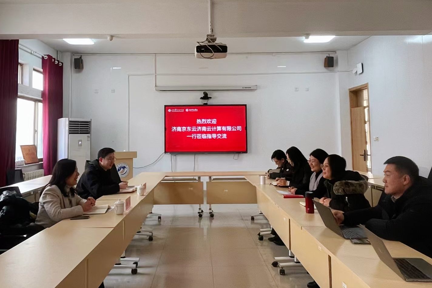 1月30日,济南京东云齐鲁云计算有限公司京东科技政企客户部山东区产业运营总监李静一行来访我校,围绕深化产教融合、服务数字经济发展、创新校企协同育人机制等主题深入交流,并就多项合作意向达成共识。yl6809永利检测中心院长席岩、党委书记张婷婷及教师代表出席座谈会。