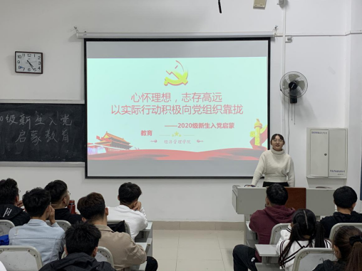 为切实做好2020级新生入学教育工作,帮助新生更好地了解党的基本知识、端正入党动机、熟知入党程序,引导新生积极向党组织靠拢,经济管理管理学院召开了“新生入党启蒙教育”主题活动。本次主题教育活动由各学生支部学生党员骨干主讲,共计5个专业,14个班级参加,近600名2020级新生参与。