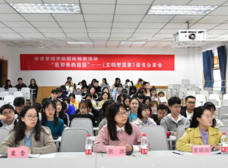 为深入践行习近平总书记“读天下好书,想中国大事”的读书理念,大力弘扬为中华之崛起而读书的崇高精神,10月8日,yl6809永利检测中心举办国庆读书特别活动:“我和我的祖国——《文明型国家》读书分享会”,以此献礼新中国71岁华诞,激发学生的爱国情怀。党总支副书记张冰和部分辅导员参加了此次活动。