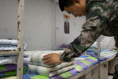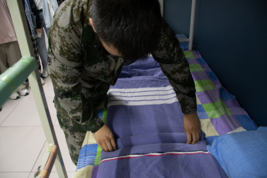 学院组织2020级专升本新生中的7名退伍老兵组成“退伍老兵志愿队”,深入到新生宿舍,指导内务整理,帮助新生营造健康温馨、积极向上的学习生活环境。活动一开始,退伍老兵新生做了简单的自我介绍,无论是钢的纪律还是绿色的军营经历吸引了大批学生的关注和好奇。之后7名老兵分4队带领宿舍长进入样板宿舍进行参观学习。接下来老兵进入新生宿舍指导内务,他们给同学强调:整理宿舍内务时物品摆放不一定要一样,但是一定要干净整洁。比如床铺上的被子要整齐地摆放在一侧;鞋子可以用鞋架整理,放置在阳台处;小物品可用收纳盒收置,东西由小到大排列放置等。实际指导叠军被环节,同学们都被老兵的娴熟动作圈粉,军人的被子,棱角最直,被角一抖,用手抹平,不一会儿豆腐块状的被子就叠好了,在场的同学纷纷鼓掌。