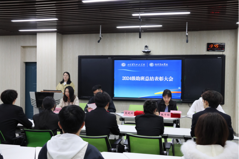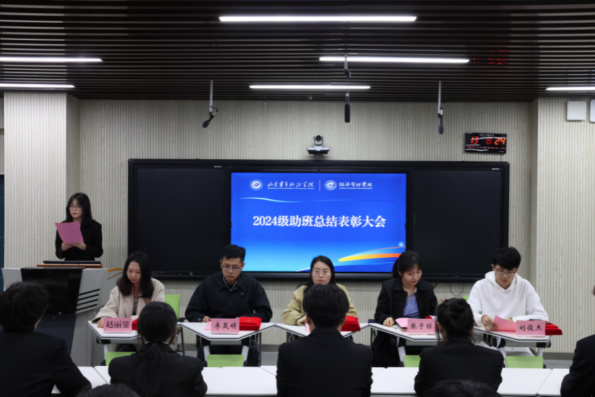夏晓丽对全体新生助班的辛勤付出表示感谢,希望全体新生积极学习,做好传承,为学校高质量发展贡献应尽力量。辅导员李晟硕宣读了表彰优秀助班的决定。2024级新生助班代表刘钟楷作了工作汇报,全面总结了助班工作中的成长收获,结合自身实践为下一届助班提供工作经验,并表示后续将继续发挥榜样引领作用,带动广大新生拼搏进取。新生代表段熙敏在发言中向全体助班表达了感谢,并立志在接下来的学习、工作和生活中积极向优秀助班学习,在新的起点上自信自强、务实创新,用饱满的热情和不懈的奋斗努力实现青春理想。