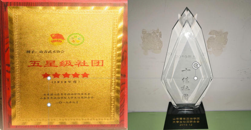 2018年度五星级社团、济南市高校双截棍大赛集体表演二等奖、第十三届社团文化节优秀社团、山青首届短视频大赛第八名,优秀团队奖、‘龙韵辉武杯’济南市高校双截棍大赛集体表演二等奖、庆祝改革开放四十周年系列活动之谁不说俺家乡好演讲比赛最佳表演奖、济南市高校双截棍大赛个人套路一等奖,二等奖,三等奖数个、济南市高校双截棍大赛个人竞速一等奖,二等奖,三等奖数个、‘龙韵辉武杯’济南市高校双截棍大赛个人套路一等奖,二等奖,三等奖数个、‘龙韵辉武杯’济南市高校双截棍大赛个人竞速一等奖,二等奖,三等奖数个。