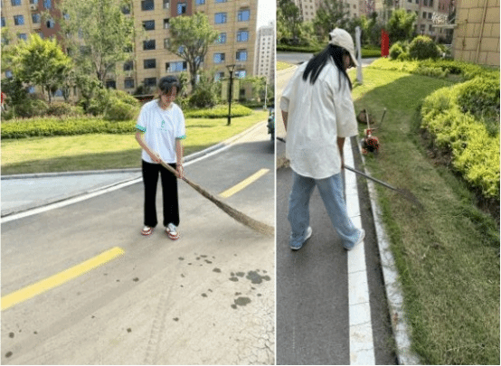 联合当地党群服务中心,助力社区卫生清洁。随着实践活动时间进入尾声,团队成员利用最后两天的时间联合党群服务中心社区物业人员在社区进行卫生清理志愿服务活动,为社区卫生打扫人员减轻负担,发挥青年人吃苦耐劳,服务社会的品质,致力于让社区环境更加美丽,得到了当地居民的一致认可。