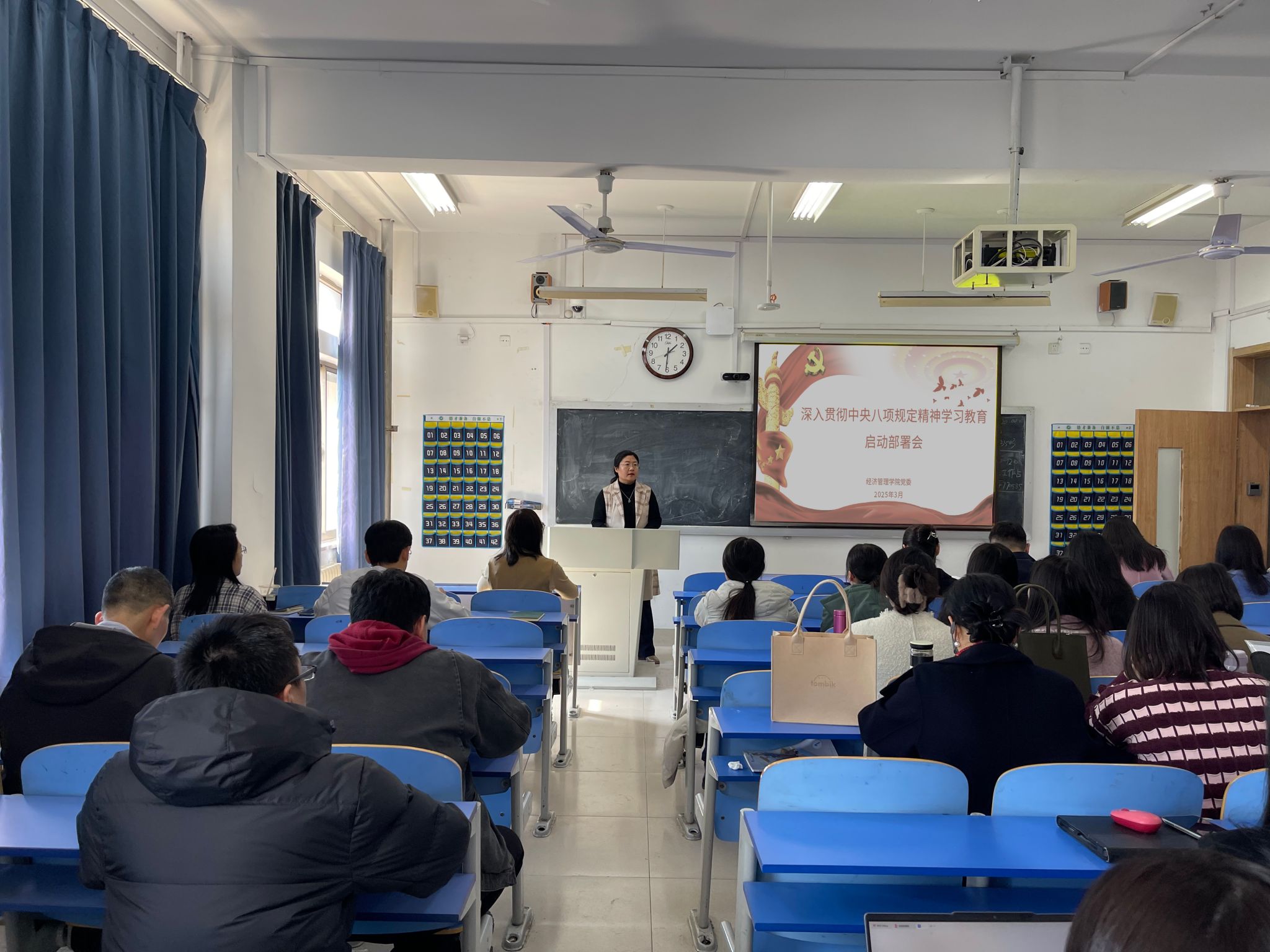会议指出,习近平总书记高度重视此次学习教育,亲自谋划确定主题、发表重要讲话、作出重要指示,为学习教育提供了根本遵循。会议强调,各党支部要根据学院安排部署,通过“三会一课”、主题党日等方式,有序开展学习教育,引导全体党员深入贯彻中央八项规定精神,持续加强党的作风建设,推动党员干部担当作为,激发干事创业的强大动力,助力学校内涵式高质量发展。会议要求,一要提高政治站位,充分认识学习教育的重要意义,锲而不舍、不折不扣贯彻落实中央八项规定精神,推动党的作风持续向上向好,确保学习教育抓紧抓实、抓出成效;二要准确把握目标,高质量开展学习教育,一体推进学查改,确保学有质量、查有力度、改有成效;三要压实责任,加强组织谋划,以实干业绩检验学习教育成效,切实把深入贯彻中央八项规定精神学习教育贯穿到学院工作的全过程各方面。